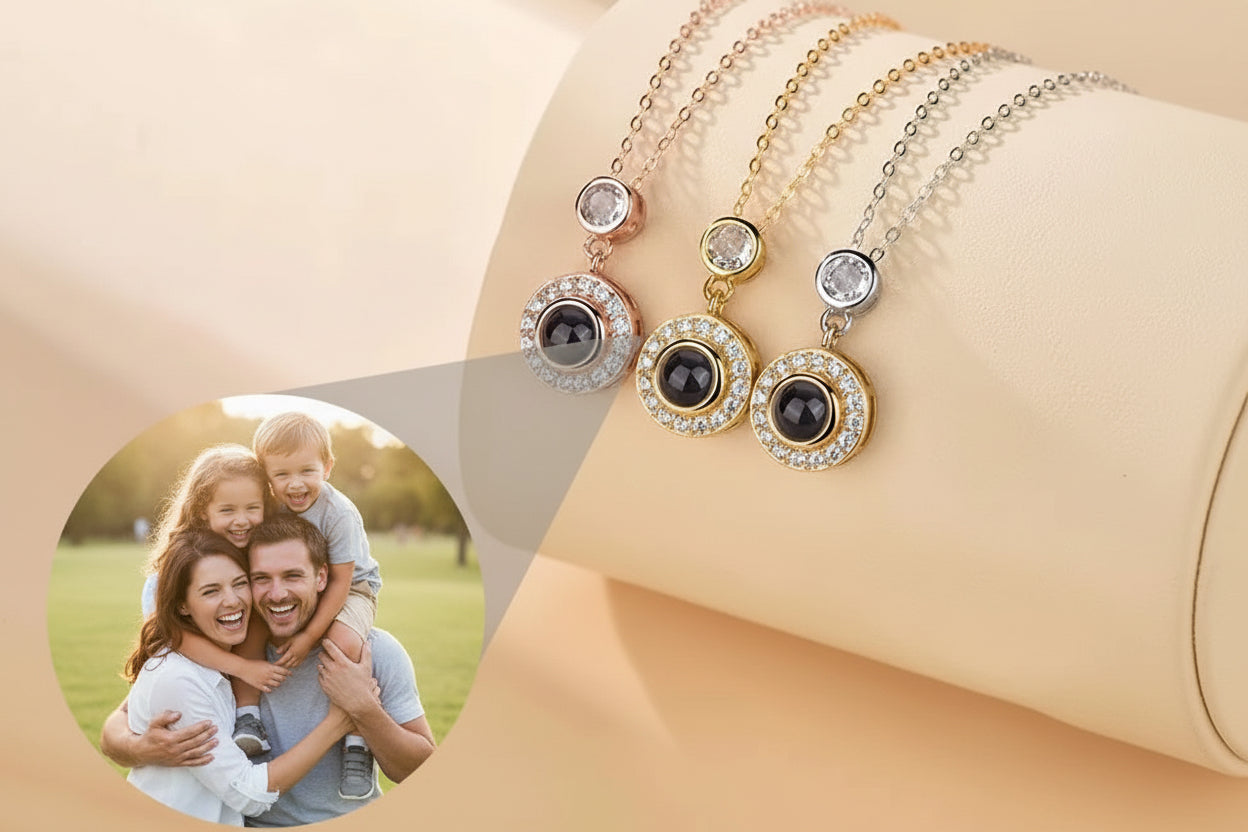 Un bijou unique et personnalisé à la main qui révèle votre photo lorsqu’il est exposé à la lumière. Vos souvenirs prennent vie, près de vous à tout moment. Que ce soit pour vous ou comme cadeau inoubliable, chaque bijou est un véritable témoignage personnel, impossible à reproduire.